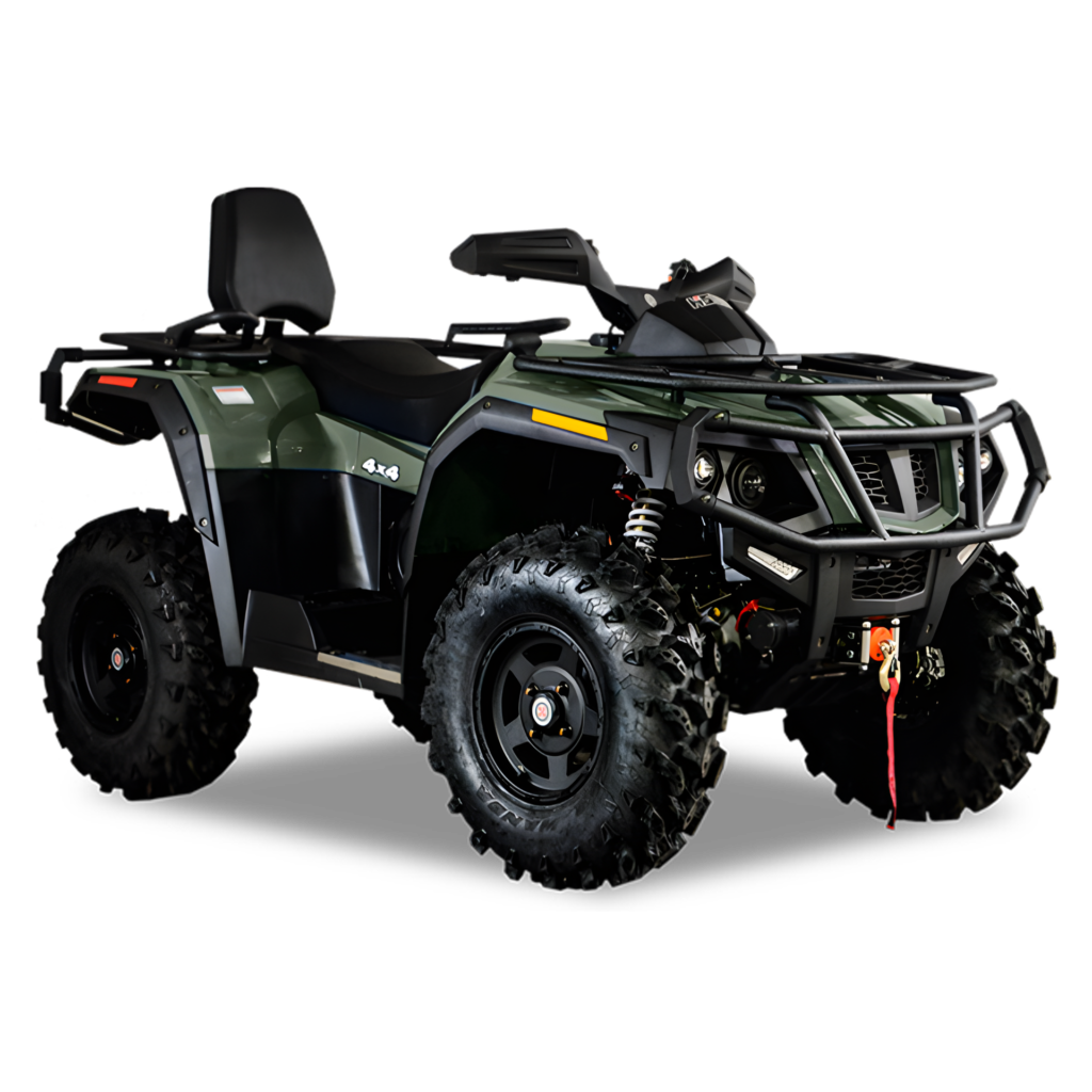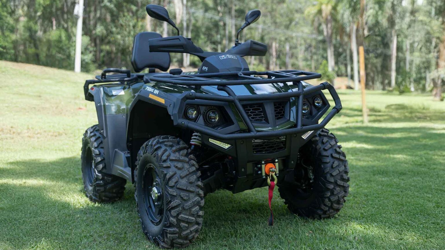 O Hisun Tactic 750 é a ferramenta de força máxima da marca no Brasil, projetado para dominar os terrenos mais hostis. Desenvolvido para entregar durabilidade extrema no campo e nas trilhas, ele é o quadriciclo que já sai da concessionária equipado para qualquer missão. Combinando um motor de 735cc com Injeção Eletrônica que entrega 41 hp de potência e 49,53 N.m de torque, o Tactic 750 oferece uma capacidade de reboque de até 605 kg. Com direção elétrica assistida (EPS), tração 4×4 com bloqueio de diferencial e suspensão independente nas quatro rodas, ele entrega a força bruta necessária para o trabalho diário, e o conforto absoluto para quem precisa passar o dia inteiro na terra com total segurança.